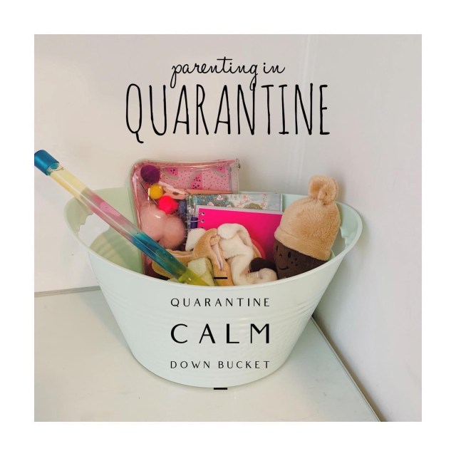 I remembered learning in a teacher training that fine motor activities can help children calm down. My daughter and I brainstormed ideas and made a Quarantine Calm Down bucket with some tools to help her when her emotions take over. We found items we already had around the house, but the possibilities are endless! We included: